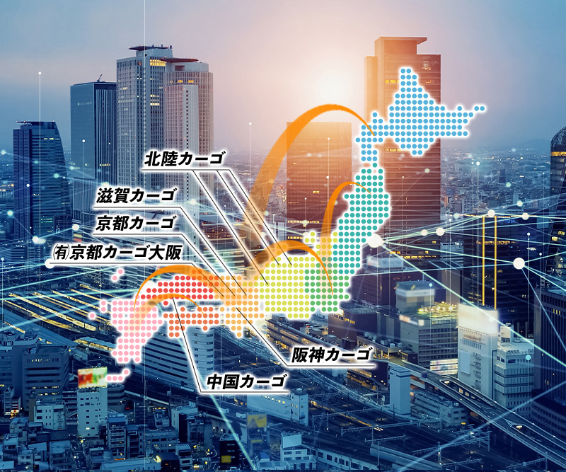 カーゴグループ40年の実績を元に関西一円及び西日本即日集荷、全国配送を可能に。
